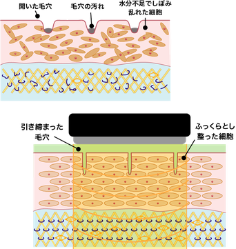 注射針を使わず、美容成分(コラーゲン・ヒアルロン酸)を肌の奥までしっかり届けます。